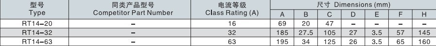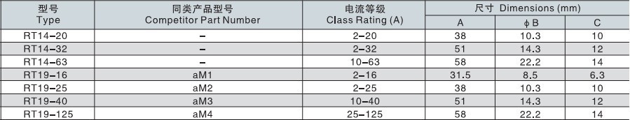 RT14/RT19系列有填料圓柱型熔斷體